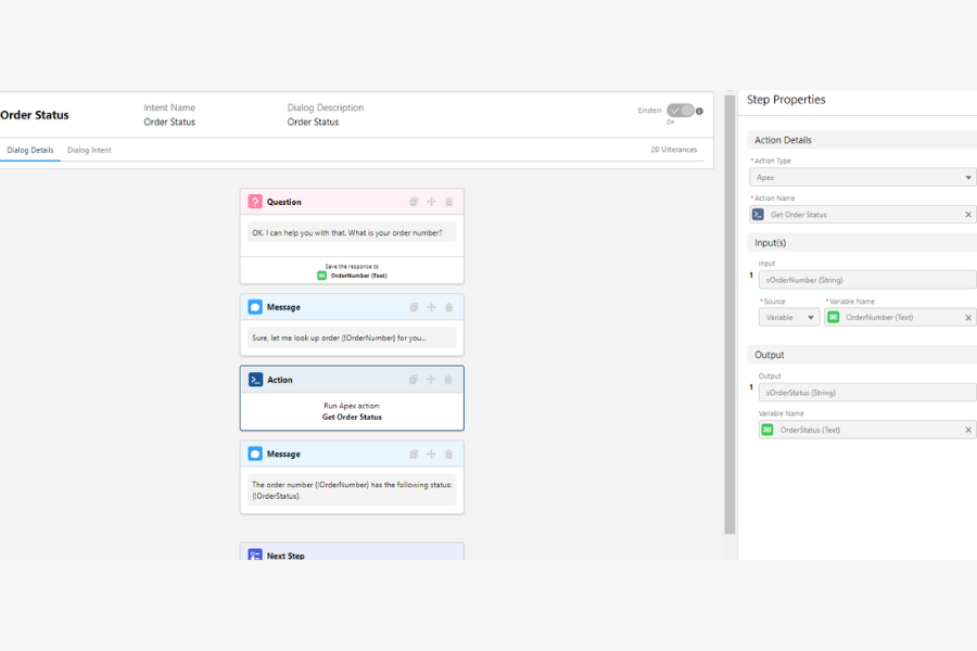 • Actions-Performs an action on our Salesforce data to present them to customers.