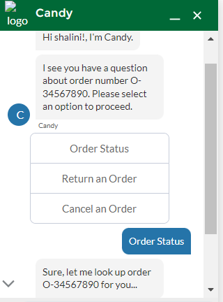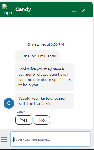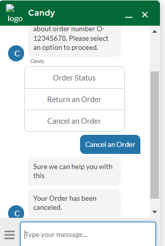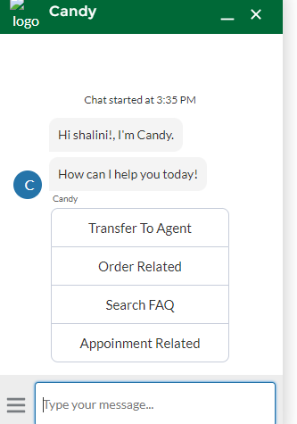 • Message-Displays an outgoing message from the bot to our customer.